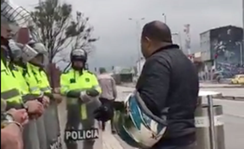 Motociclista paró su recorrido en medio de las marchas para orar por los policías