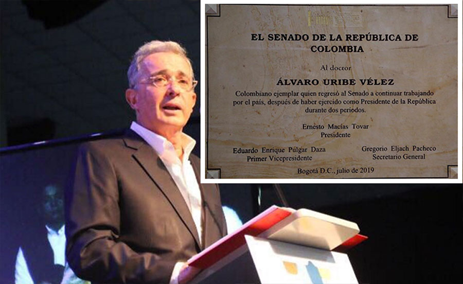 Instalan placa en honor al expresidente Álvaro Uribe en el Senado
