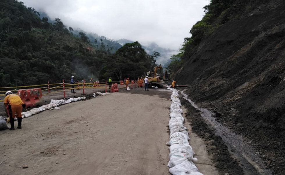Con trabajos de remoción por parte de 70 equipos de maquinaria pesada y 80 trabajadores, que estuvieron laborando día y noche durante 12 días, con el apoyo y acompañamiento de la Policía Nacional, a través de la Dirección de Tráfico y Transporte, y del Ejército Nacional, se pudo agilizar este corredor vial que conecta dos ciudades importantes del país.